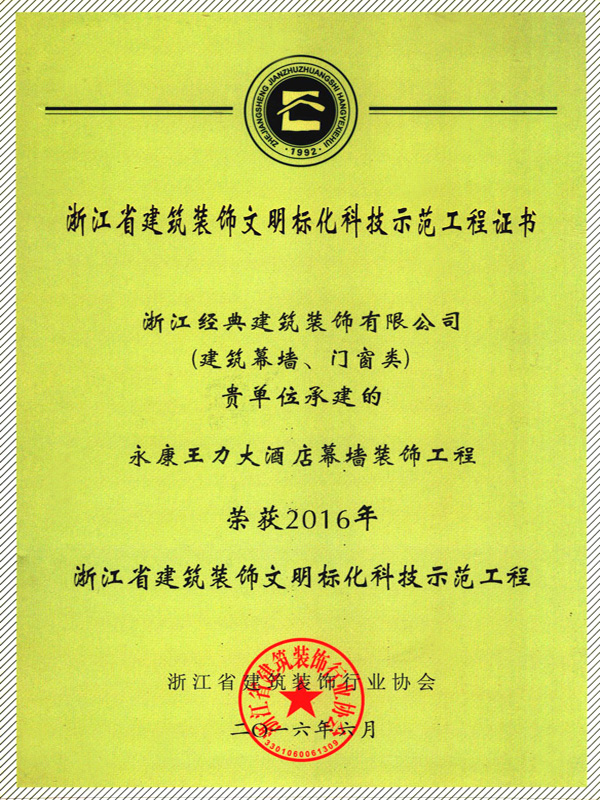 2016年永康王力大酒店幕墻裝...